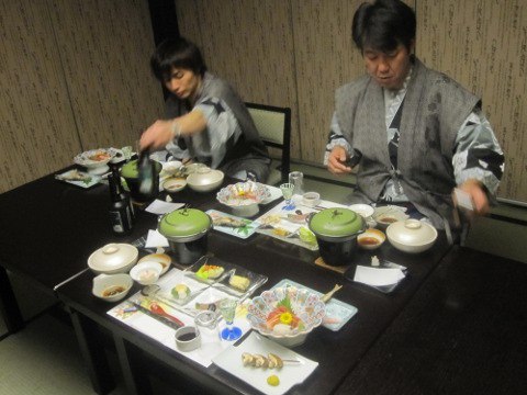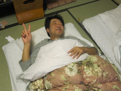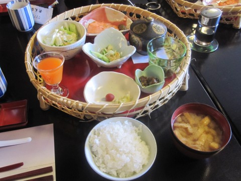 「また自転車乗んのかあ~。電車で帰らうよ~」、「大和魂だろ!」、「今日は正丸トンネルで帰らう。一人位の犠牲者は覚悟のうえだ」。旅館の豪勢な朝食をたつぷり戴いて、宿をチエツク・アウト。