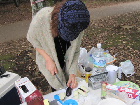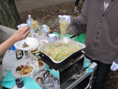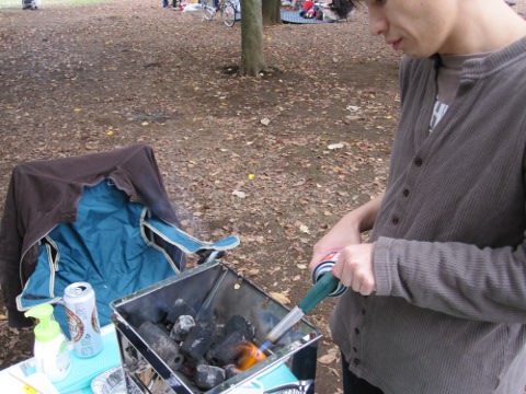 十月の終わりでも此処小金井公園はバーベキューで賑つている。よし、場所も決まつて設営完了。