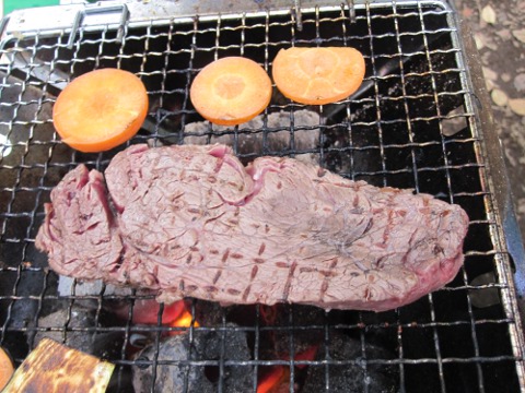 先ずは麦酒で乾杯して、後は炭をおこせば焼くだけだ。しかし、なかなか炭がおきませんな。二、三十分掛かりました。
