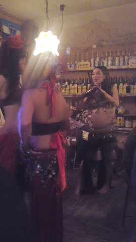 今夜はベリー・ダンス・シヨー。「席替わります?こつちの方が良く見えるかも」。いよいよシヨーが始まる。「何だ、そつちの方が良く見えるじやん」。