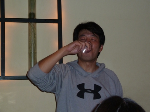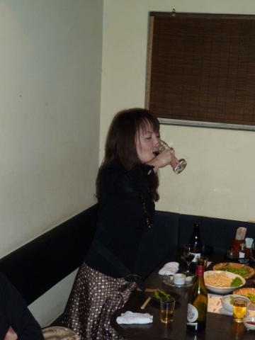 弐次会は「はんぞう」の座敷を貸切つた。「じやあ、そろそろ一気飲み始めます!」、「でえ~、マジつすか?」。余輩もやれと言われてもないのに続く。