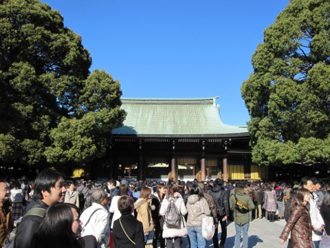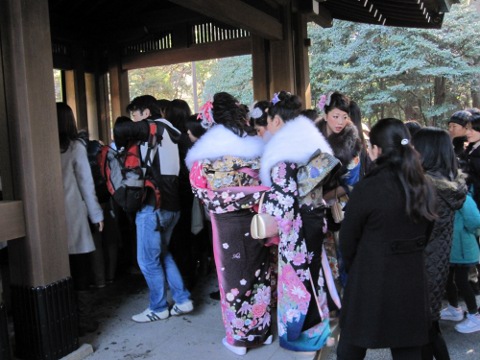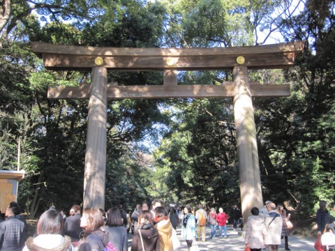 自転車を降りていざ参拝。明治神宮には二、三度しか来たことがないがとても広い。初詣の参拝客が多い。晴着姿の女性も目に付く。やはり此処は日本である。