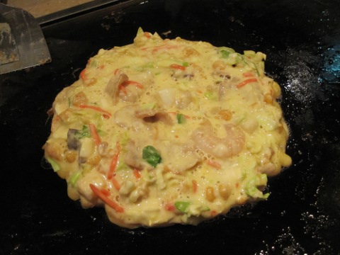 夜は吉祥寺でお好み焼き。以前満席で入れなかつた玉屋。今日は時間が早いから四人で座敷に入れた。