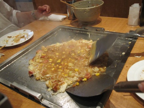 「統括、何とかしろ!」。やつと七人入れるお好み焼屋が見つかる。名前は「ぱすたかん」だけどお好み焼ともんじや焼。