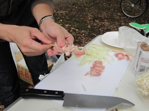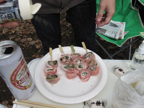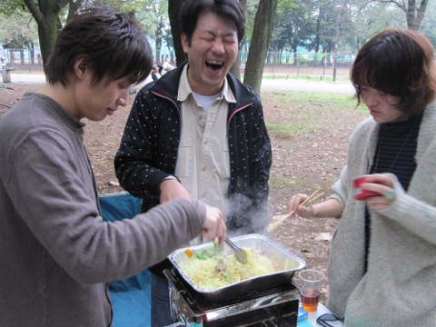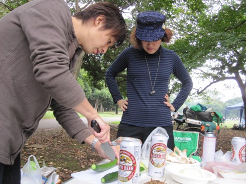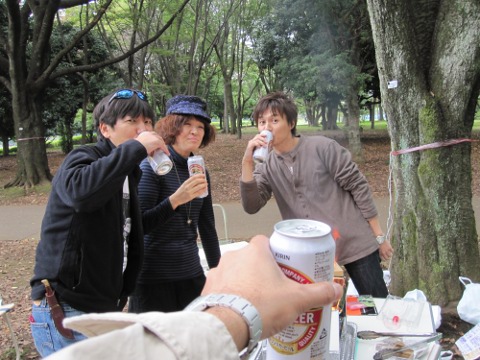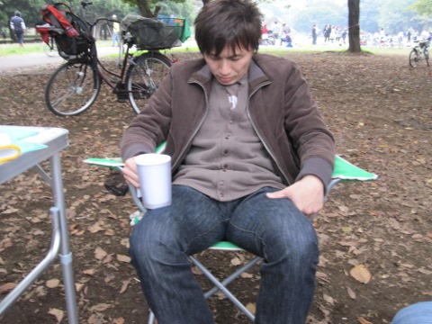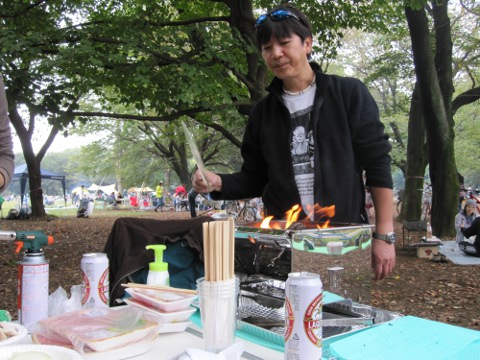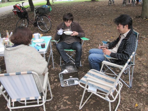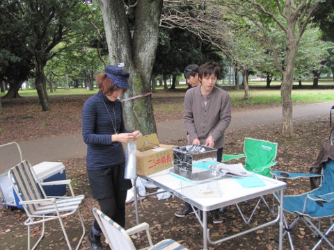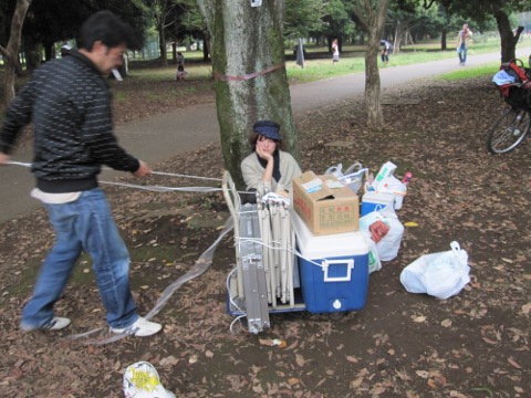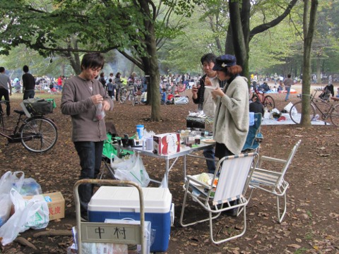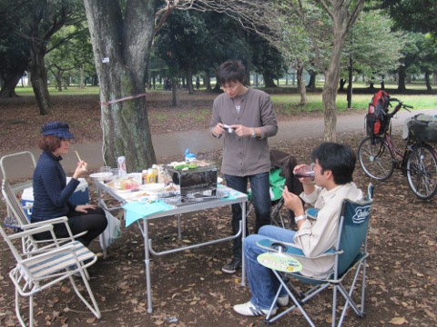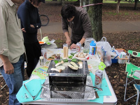 十月の終わりでも此処小金井公園はバーベキューで賑つている。よし、場所も決まつて設営完了。