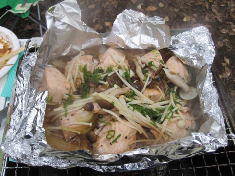 紫蘇の鶏肉巻き、鮭ホイル焼、茸ホイル焼と料理長の技が冴える。「俺、何か一人でこじんまりした店やろうかな~」、「此処でやんなよ。毎晩呑みに来るよ」。