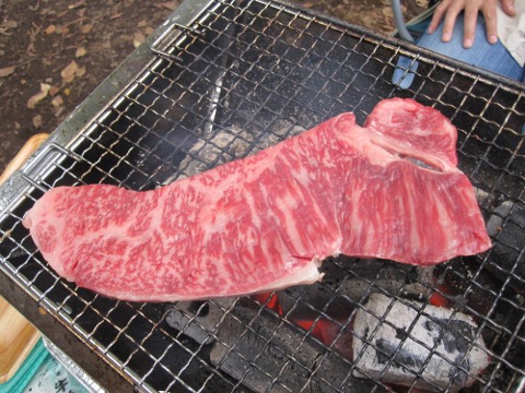 先ずは麦酒で乾杯して、後は炭をおこせば焼くだけだ。しかし、なかなか炭がおきませんな。二、三十分掛かりました。