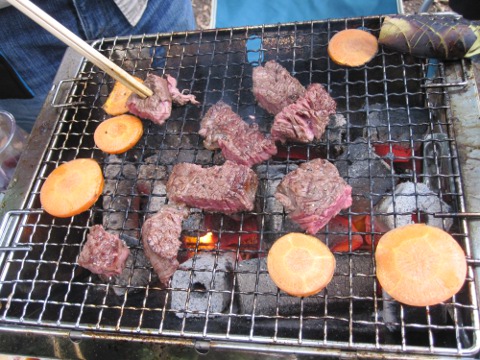 しかし、炭火はいいね~。野菜も肉も美味く焼けるね~。戦闘機が編隊で上空を飛ぶ。「この辺に基地有りましたつけ?」、「横田か立川かな」。