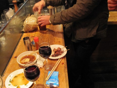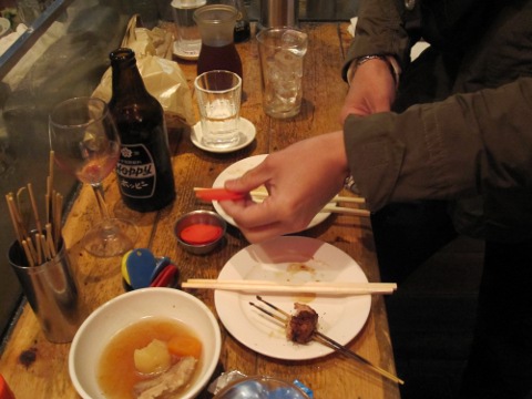 しかし焼場の真前は煙いのだ。久し振りのてっちゃんのもつ焼は美味かつた。「今日工作員アヒル?」、「俺ちよつと見てきます」、「エイヒレです」。