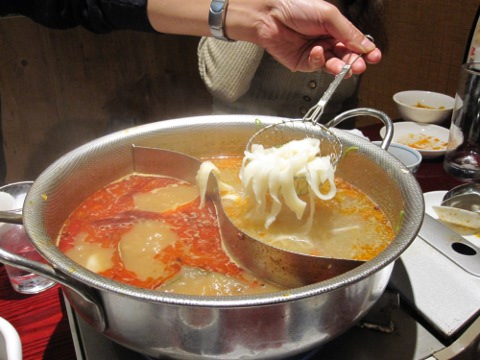 女学生が合流し、シーアンへ。「火鍋は二人前でいいか」、「タレは別料金あるよ」、「へつ、何が?」、「四人いるから二人分のタレが追加になるんですよ」、「そつか」。