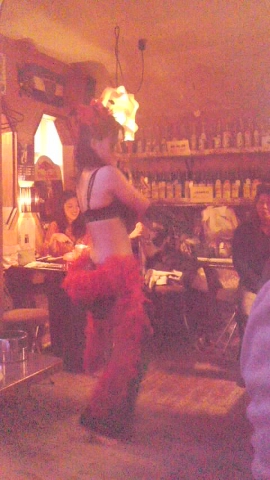今夜はベリー・ダンス・シヨー。「席替わります?こつちの方が良く見えるかも」。いよいよシヨーが始まる。「何だ、そつちの方が良く見えるじやん」。