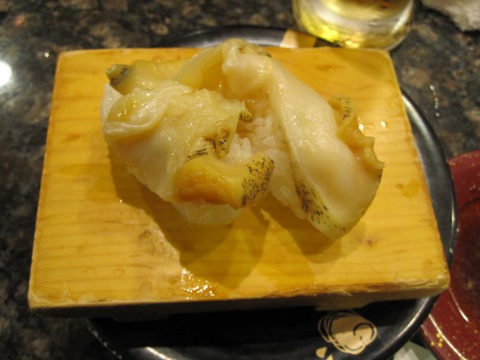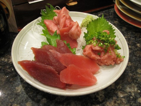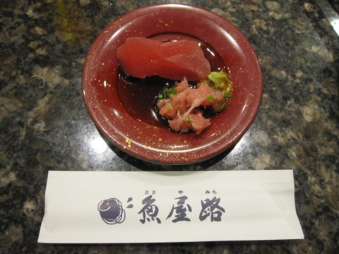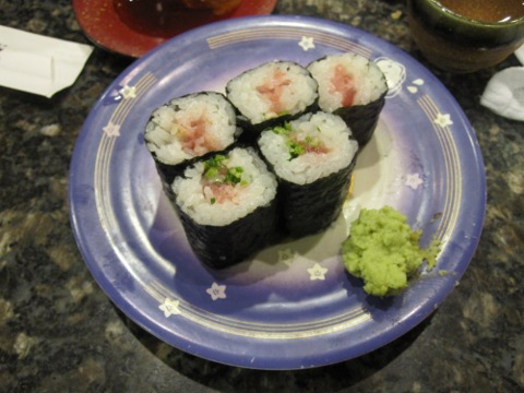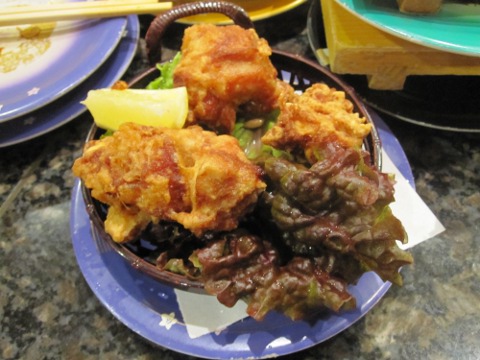 此処は回転鮨でもネタはまとも。鮪を刺身で戴く。中落ちが美味いでないの。トロはお腹に溜まるので余り好みではない。