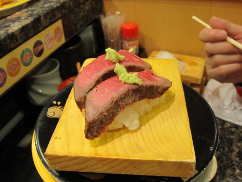 ケーキがクルクル回つてくるね。でも流石に鮨屋でケーキは戴けません。「烏賊、蛸、赤貝、刺身でちようだい」。